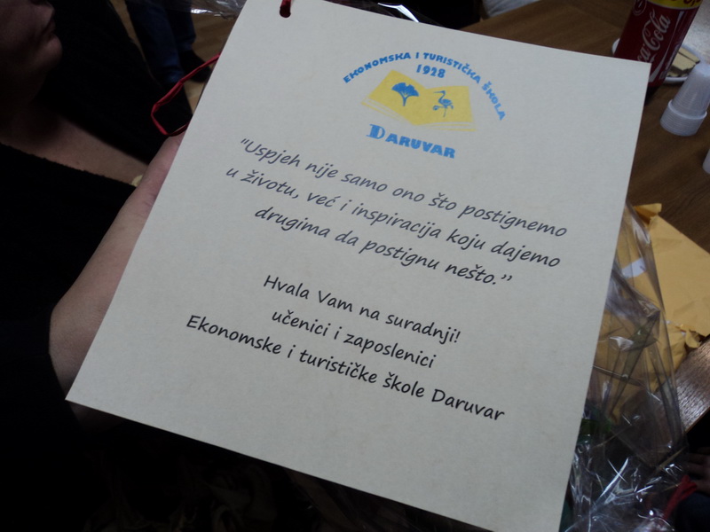 Daruvarske udruge osoba s invaliditetom su jučer obilježile međunarodni dan osoba s invaliditetom. Dopodne su naši vrijedni članovi izlagali uratke sa kreativnih radionica te dijelili promotivne letke o pravima i potrebama osoba s invaliditetom na gradskom trgu. Uz to smo predstavljali akciju pod nazivom “16 dana aktivizma” koja svake godine počinje 25. studenog, inače Međunarodnog dana nenasilja nad ženama a završava 10. prosinca Međunarodnim danom ljudskih prava. Poslijepodne smo ugostili đake Srednje ekonomske i turističke škole Daruvar. Članovi učeničkog vijeća su došli u pratnji pedagoginje Davorke Šorak te smo ih ugostili u prostorijama Udruge. Prisutni djelatnici u Udruzi su im se ukratko predstavili i pojasnili koja su njihova zaduženja. Uz to, objasnili su im koja prava mogu ostvariti osobe s invaliditetom koji su članovi udruge te pozvali prisutne učenike da im postave pitanja. Kad su se upoznali s aktivnostima koje se odvijaju u udruzi, pružili smo im prigodu da isprobaju bacati pikado s neprozirnim naočalama na pikadu za slijepe osobe. Time su stekle uvid u to kako se moraju slijepe osobe snalaziti u prostoru. Nakon što su se okušali u pikadu, iskušali su i bacati krugove te zaigrali nakratko viseću kuglanu.